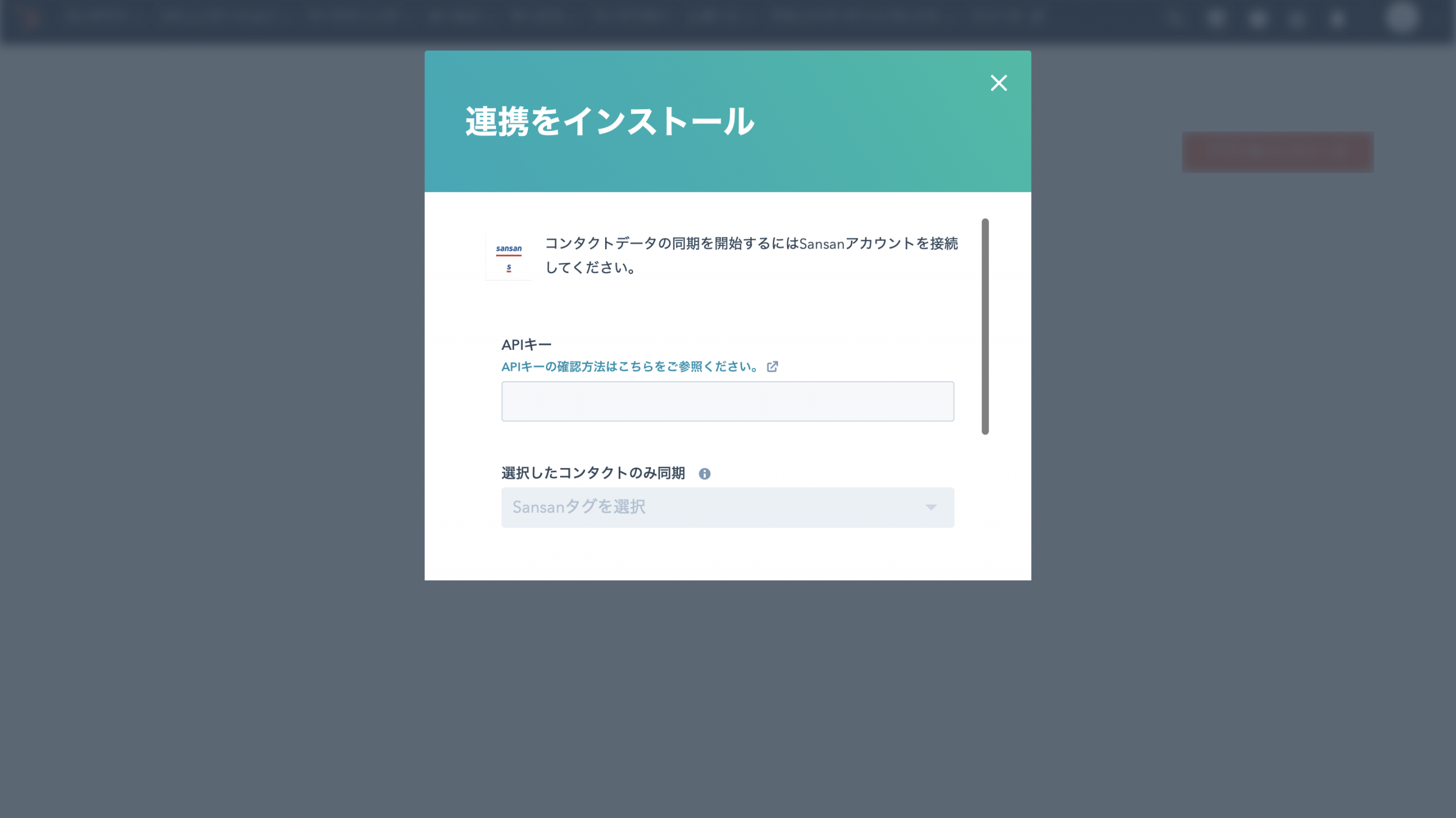 3.HubSpotで「アプリをインストール」をクリックし、自分のSansanアカウントでログインを行い、APIキーをダイアログボックスに入力