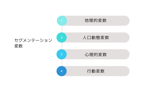 このセグメントに分けるときに切り口となるセグメンテーション変数の設定こそが、最も困難かつ重要であり、今後のマーケティング戦略を大きく左右するポイントです。