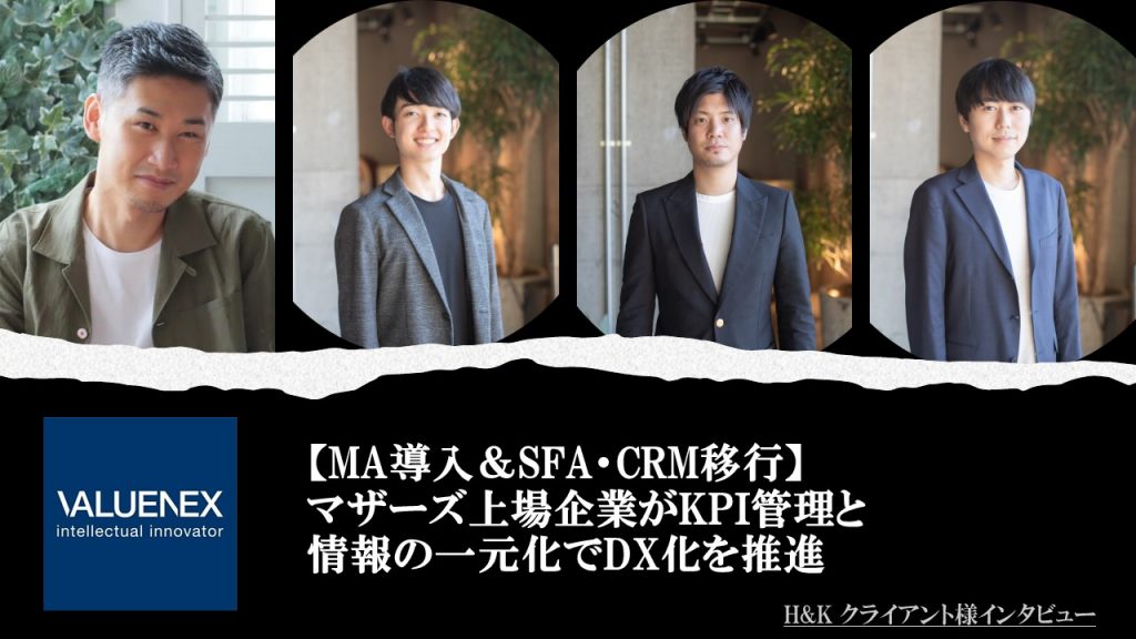 近年ではMA、SFAなどを用いてDX化を進める企業は数多くいます。しかしMA、SFAなどで異なるツールを使用するため、社内に混乱を招き、浸透が進みにくいケースがあります。そんな問題に対しては情報の一元化が可能なツールHubSpotの利用が考えられます。今回H&Kは、MAの導入、SFA・CRMの移行を行ったVALUENEX様にインタビューを行いました。本施策では主に以下の3点を目的として、