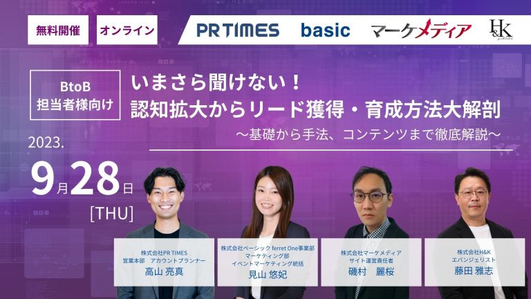 開催済【BtoB担当者様向け】いまさら聞けない!認知拡大からリード獲得・育成方法大解剖